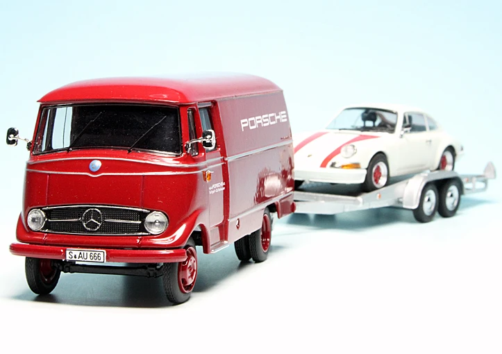 Schuco Mercedes Benz L 319 D Kastenwagen Mit Anhänger Und Porsche 911 Coupé „Porsche“